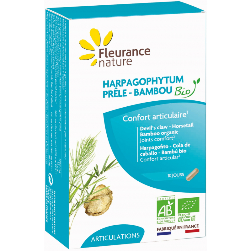 Fleurance Nature Harpagophytum Prêle Bambou Bio aide le confort articulaire par la griffe du diable.