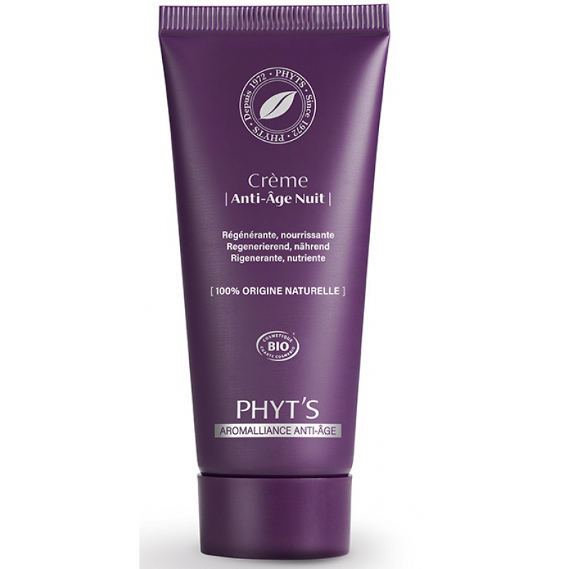 Phyt's Crème anti âge Nuit Aromalliance 40gr permet d'avoir une action défroissante au cours du cycle cellulaire de régénération de la nuit.