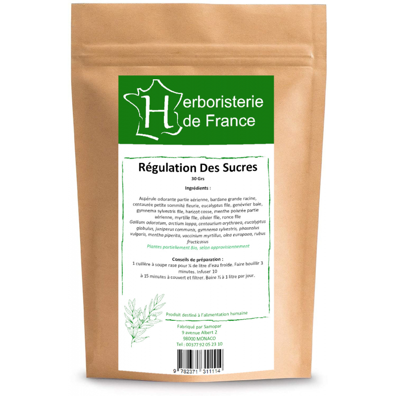 Herboristerie De France Tisane Régulation des Sucres 30gr est un produit alimentaire pour préparation de tisane proposé par Onaturel, pour contrôler l'équilibre du taux de sucres.