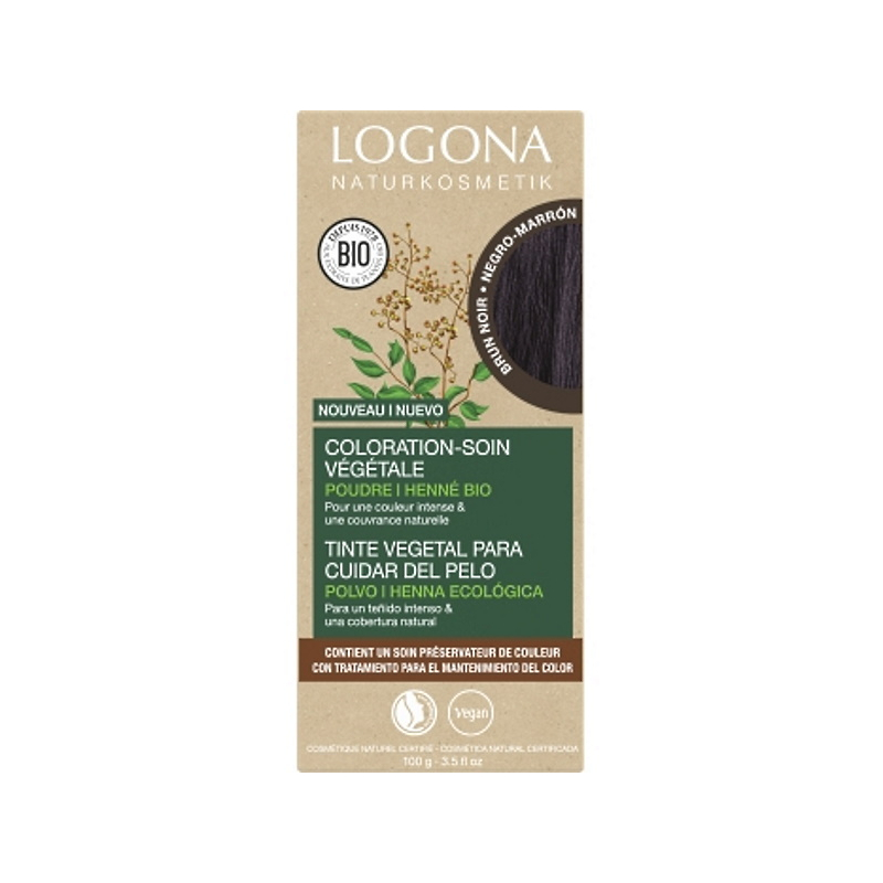 Logona Coloration soin végétale Brun Noir 100gr permet d'apporter une teinte Noir intense, sans reflets afin de teinter les cheveux chatain clair à chatain foncé.