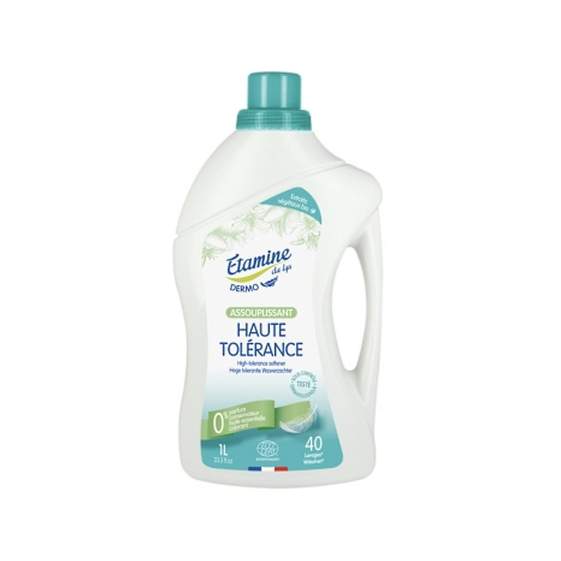 Etamine du Lys Assouplissant Dermo Haute tolérance 1 litre permet de rendre plus doux et plus souple le linge, sans apporter de parfum, pour ne pas perturber les peaux sensibles et allergiques.
