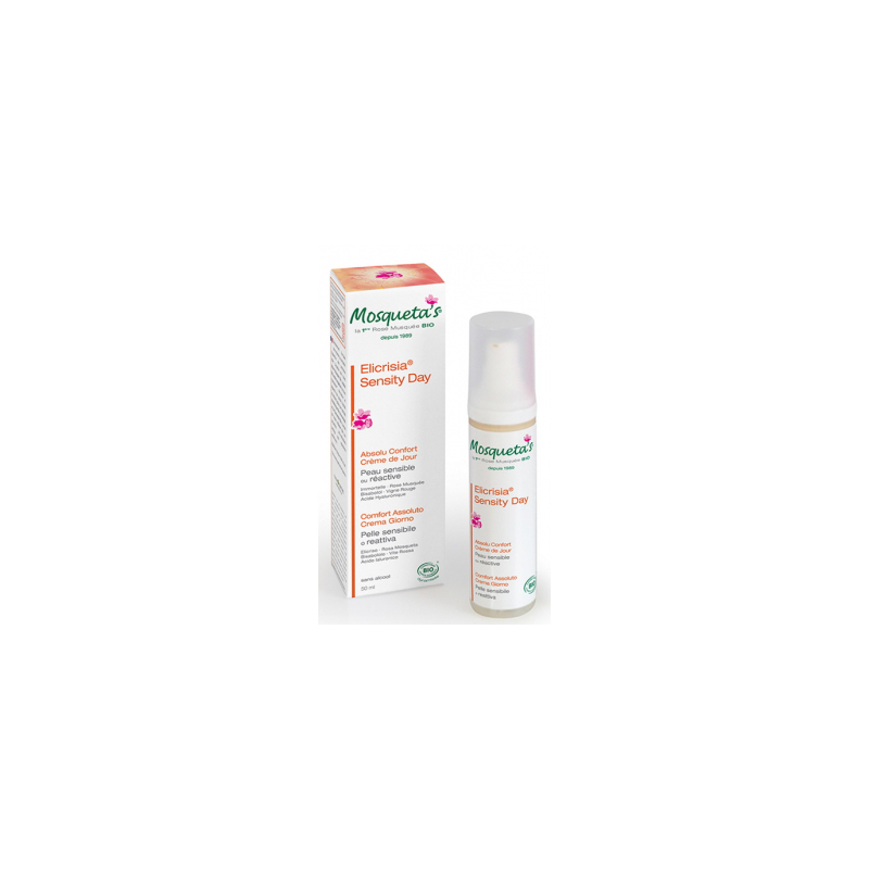 Conçue pour la peau fragile ou à tendance à couperose, la Crème Elicrisia Sensity Day exerce une action apaisante et adoucissante grâce à de précieux actifs: Immortelle*, Bisabolol, Aloe Vera*, Vitamine E. Les huiles végétales (Rose Musquée*, Abricot*, Karitè*, Jojoba*), nourrissent et reconstituent la peau même la plus fragile. L’extrait de Vigne Rouge*, l’hydrolat de Cassis* et la Rose Musquée* stimulent l’épiderme. L’Acide Hyaluronique assure une parfaite hydratation.