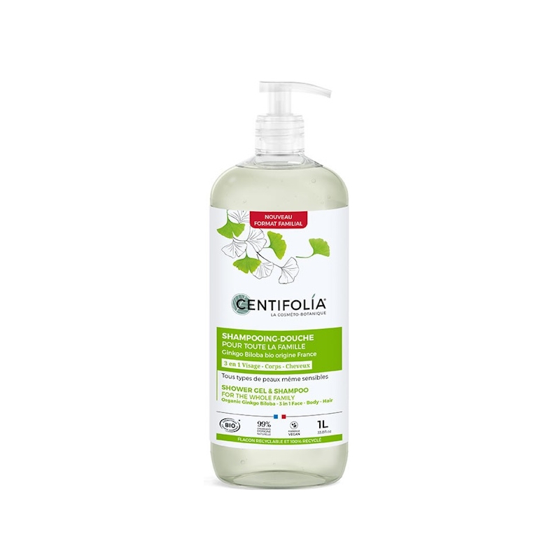Pour que votre corps (ainsi que vos cheveux) puisse avoir hydratation et apaisement (contre les irritations des peaux sensibles), Centifolia Shampoing Douche pour toute la famille apporte un complexe apportant : Eau, décyl glucoside, gomme xanthane, Extrait de feuille de ginkgo biloba, Jus de feuille d'aloe vera en poudre, Produit de la fermentation de radis par la bactérie Leuconostoc, peptides de pois, glycérine, benzoate de sodium, acide citrique, Parfum, linalol .