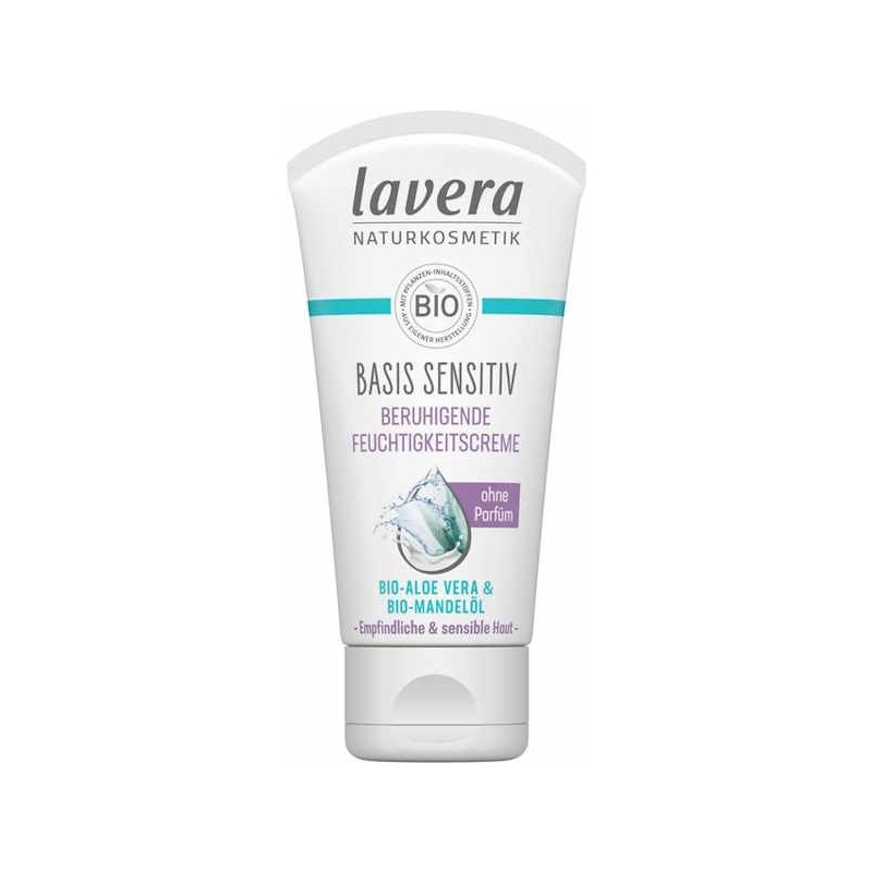 Lavera Crème hydratante apaisante Basis sensitiv 50 ml apporte hydratation et douceur aux peaux sensibles.