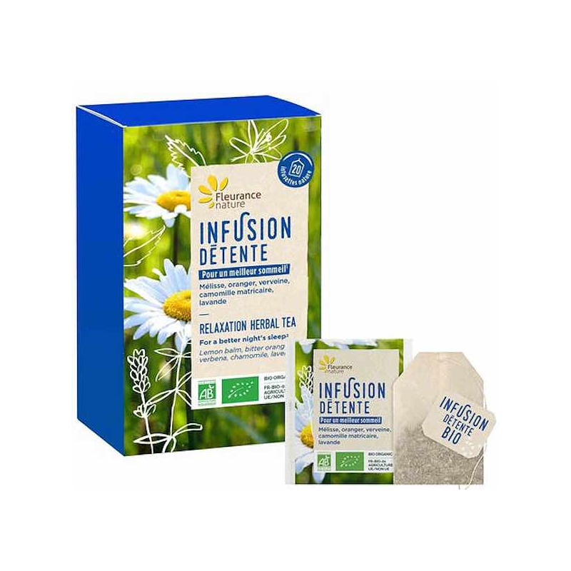 Fleurance Nature tisane Détente bio 20 sachets permet de préparer une belle infusion du soir et relaxante.
