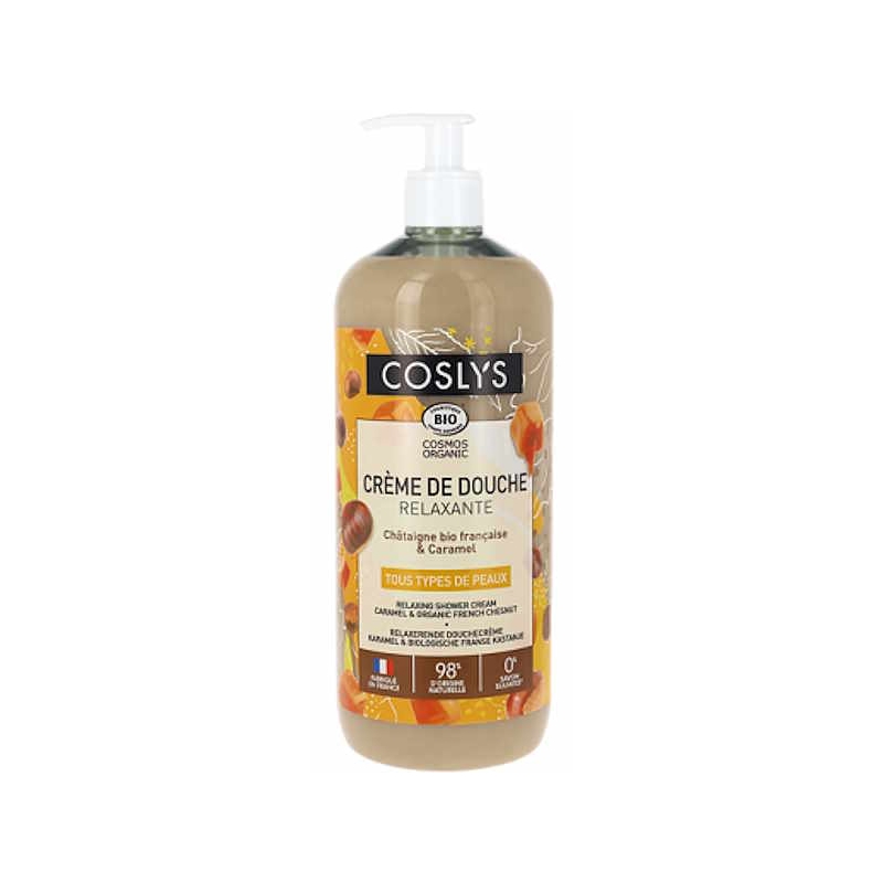 Coslys Crème de douche relaxante châtaigne caramel 1 Litre apporte hygiène, bien-être et gourmandise, avec ces senteurs de chataigne et de caramel envoutantes.