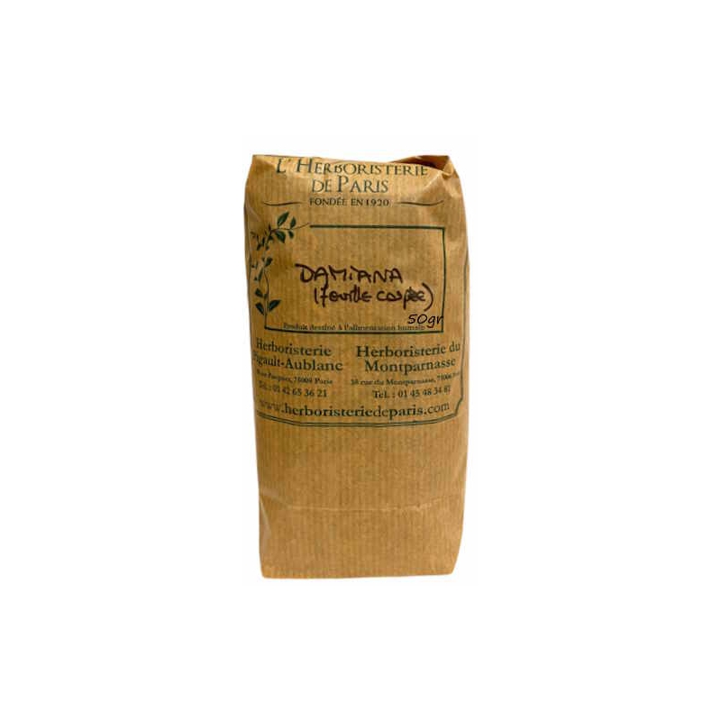 Herboristerie de Paris Tisane Damiana 50 gr apporte la possibilité de préparer une infusion de damiana de l'espèce Turnera diffusa var. aphrodisiaca.