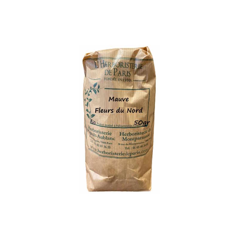 Herboristerie de Paris Tisane Mauve du nord fleur 50 gr permet d'apporter une tisane riche en mucilages de pétales de mauve.