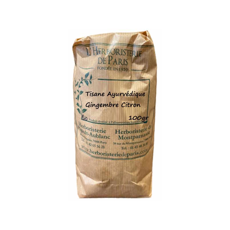 Herboristerie de Paris Tisane Ayurvédique Gingembre Citron 100 gr apporte une synergie de plantes d'herboristerie pour aider au maintien du tonus et de l'énergie (gingembre, hibiscus, réglisse).
