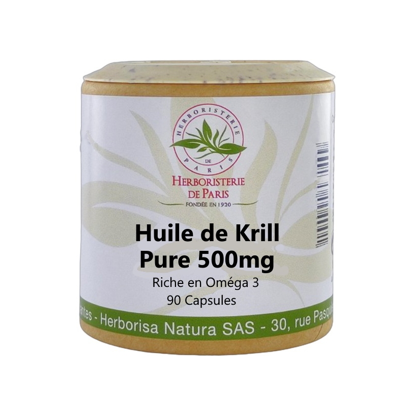 Herboristerie de Paris Huile de Krill 500mg 90 capsules permet d'apporter pour 2 capsules prises par jour, 440mg d'Oméga 3 (sous forme de EPA et DHA).