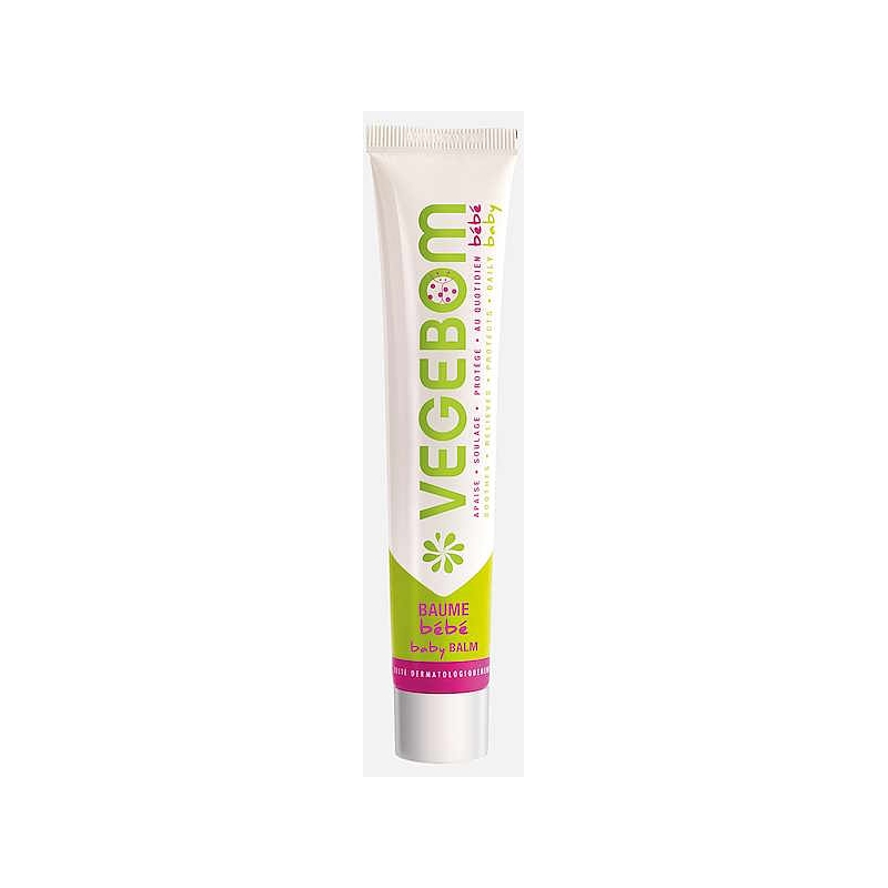 Végébom Baume bébé 45g permet d'aider à soulager la peau fragile de bébé, en cas de rougeurs, irritations, ou démangeaisons.