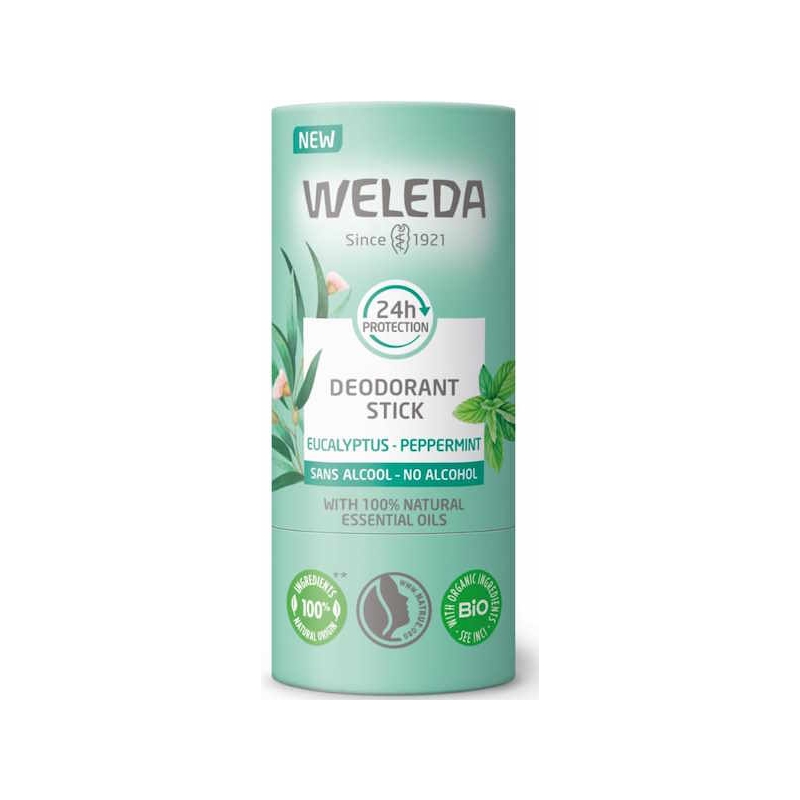 Weleda Déodorant solide 24H Eucalyptus Menthe poivrée 50gr apporte une synergie huile essentielle de sauge et citrate de triéthyle (naturel) pour contrôler les mauvaises odeurs d'une transpiration excessive.