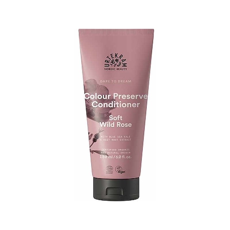 Urtekram Après shampoing cheveux colorés à la Rose Sauvage Soft Wild Rose 180ml permet de conserver la couleur capillaire entre 2 colorations végétales.