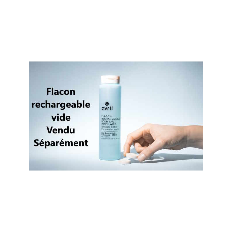 Cette recharge nécessite l'achat d'un flacon rechargeable d'eau micellaire Avril vendu vide et séparément.