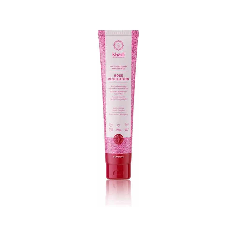 Découvrez l'effet extraordinaire de l'après-shampooing réparateur ayurvédique khadi Rose Revolution sur vos cheveux.