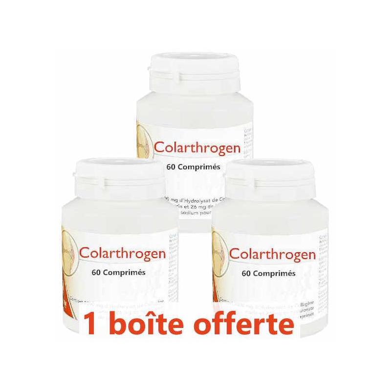 Monapharm Lot de 3 Colarthrogen Collagène marin Acide hyaluronique 3x60 comprimés permet d'apporter une cure complète de 90 jours (3 mois de cure) en collagène marin hydrolysé.