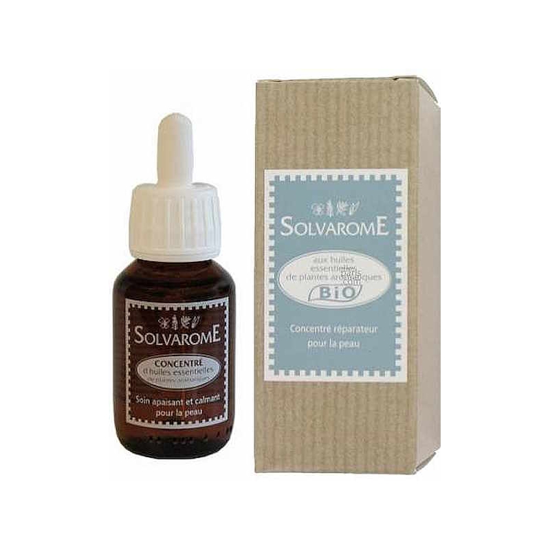 Solvarome Concentré bio 30ml permet d'apporter un concentré cosmétique réparateur pour la peau.