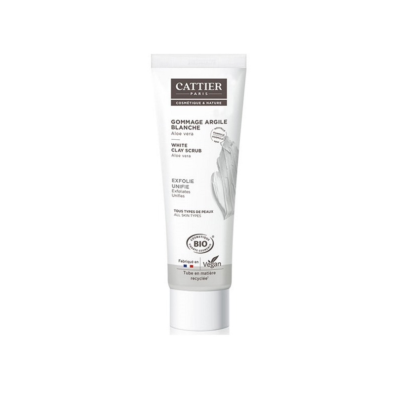 Adapté à tout type de peau, le gommage à l'argile blanche de 100 ml élimine les impuretés et les cellules mortes de l’épiderme. Enrichie en sels minéraux et en oligo-éléments, l’argile blanche ou kaolin resserre les pores dilatés et atténue les rides et les ridules. L'extrait de bambou exfolie et nettoie la peau tandis que l’huile de graines de tournesol assure l’hydratation des couches de l’épiderme. L’Aloe vera apaise les rougeurs et les irritations et facilite le renouvellement des cellules cutanées.