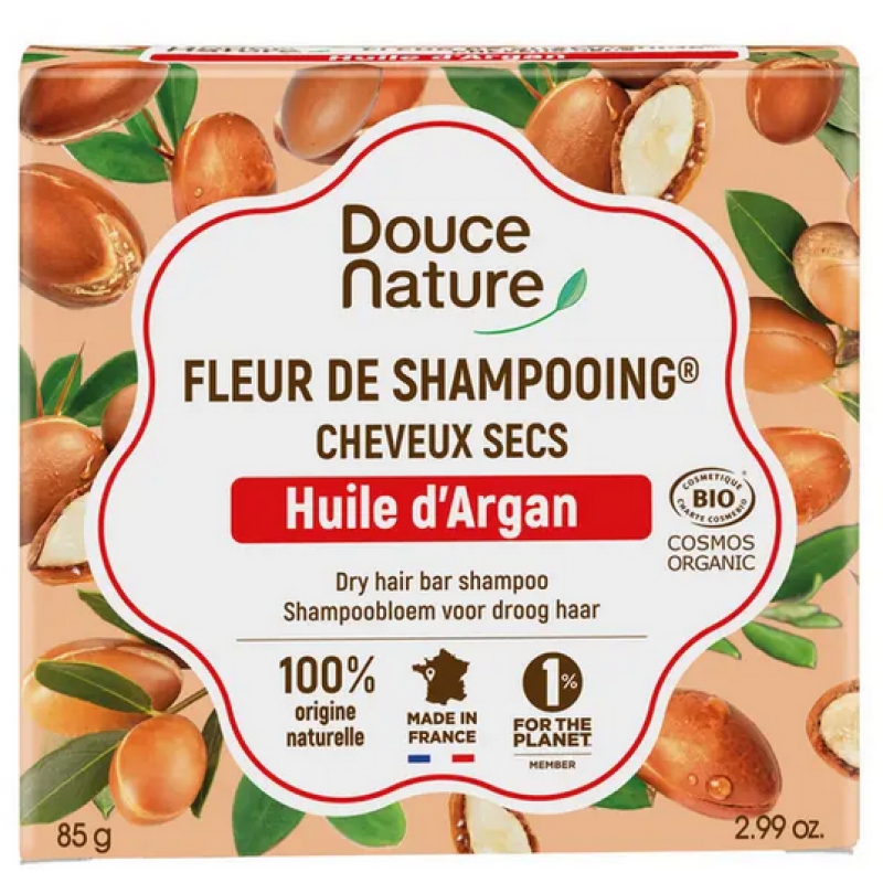 Fleur de shampooing bio pour les cheveux secs à l'huile d'argan bio.