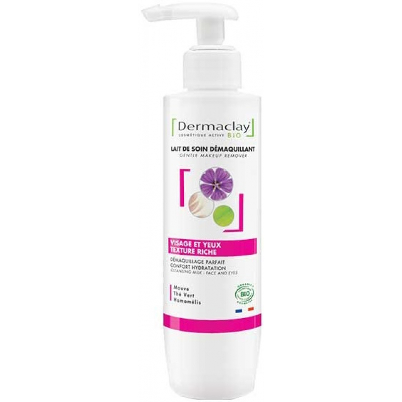 Dermaclay Lait de soin démaquillant texture riche 200ml avec : Mauve, Thé vert, Aloe vera :