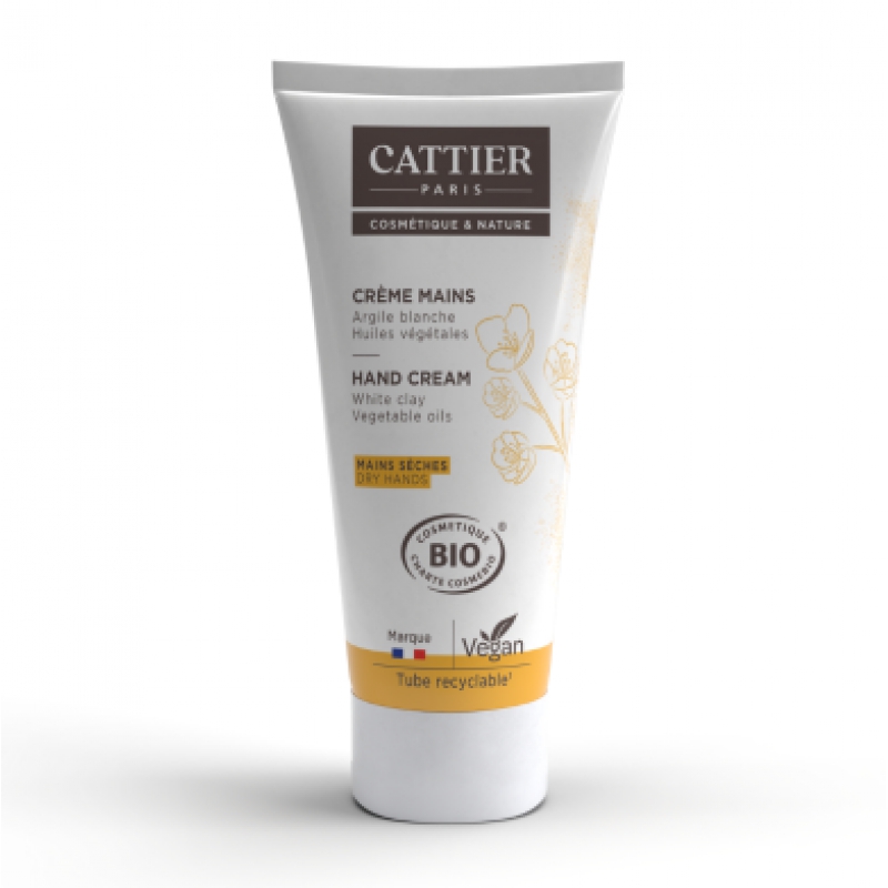 La Crème Mains Sèches Argile blanche 75 ml de la marque Cattier est efficace pour hydrater les mains sèches et abîmées. Enrichie en argile blanche, en huiles essentielles et en extrait de lichen, sa formule unique promet douceur et souplesse à la peau.