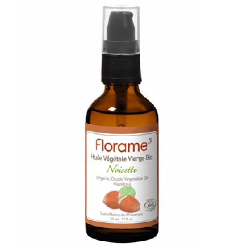 Florame Huile végétale vierge bio de Noisette bio 50ml permet d'apporter des acides gras mono-insaturés protecteurs des peaux sensibles.